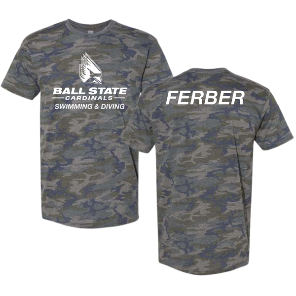 Ball State University Swimming & Diving Vintage Camo Tee - Reeve Ferber