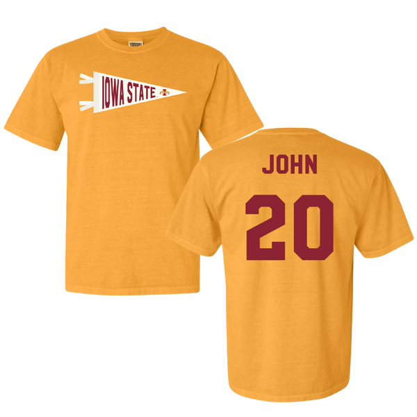 Iowa State University Soccer Gold Pennant Comfort Colors Tee - #20 Regan John