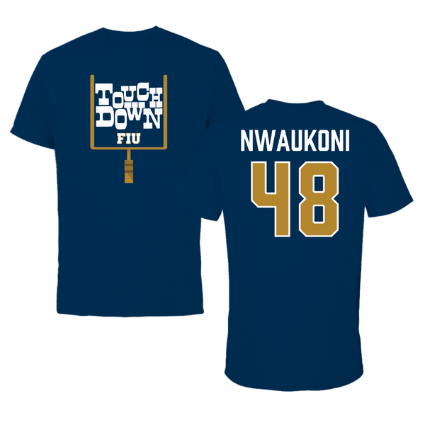 Florida International University Football Navy Touchdown Tee - #48 Richard Nwaukoni