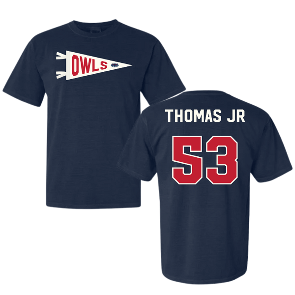 Florida Atlantic University Football Navy Pennant Comfort Colors Tee - #53 Richard Thomas Jr