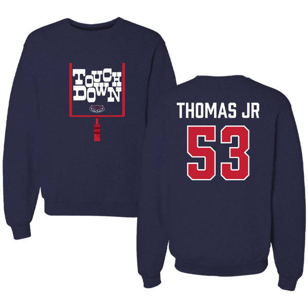 Florida Atlantic University Football Navy Touchdown Crewneck - #53 Richard Thomas Jr