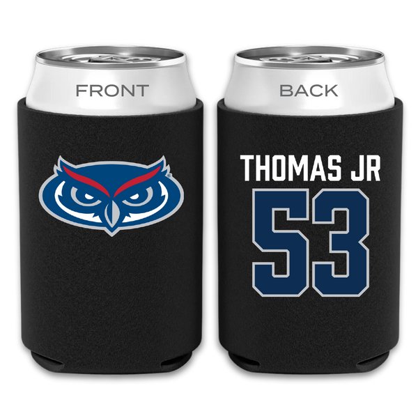 Florida Atlantic University Football Black Can Cooler - #53 Richard Thomas Jr