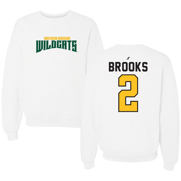 Northern Michigan University Basketball White Classic Crewneck - #2 Riley Brooks