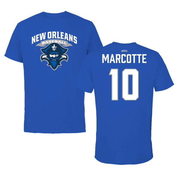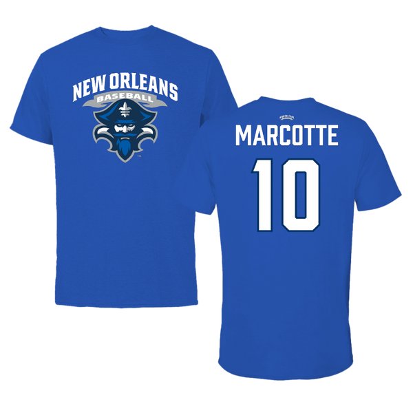 University of New Orleans Baseball Blue Mascot Tee - #10 Riley Marcotte