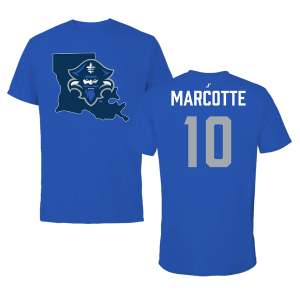 University of New Orleans Baseball Blue State Tee - #10 Riley Marcotte