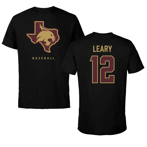 Texas State University Baseball Black Tee - #12 Ryan Leary