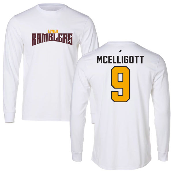 Loyola University-Chicago Volleyball White Mascot Long Sleeve - #9 Ryan McElligott
