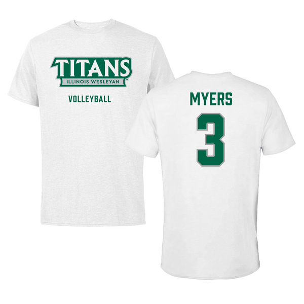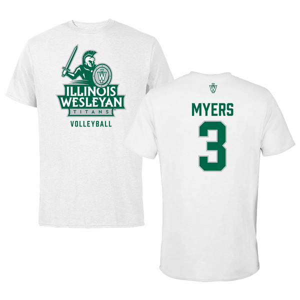 Illinois Wesleyan University Volleyball White Tee - #3 Ryan Myers
