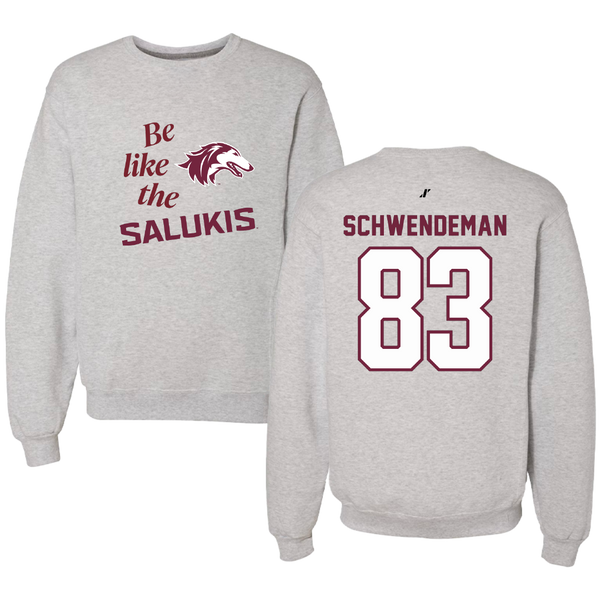 Southern Illinois University at Carbondale Football Light Gray Be Like Us Crewneck - #83 Ryan Schwendeman