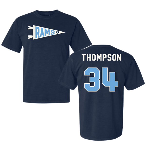 University of Rhode Island Baseball Navy Pennant Comfort Colors Tee - #34 Ryan Thompson