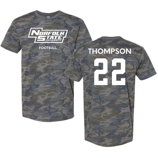 Norfolk State University Football Vintage Camo Tee - #22 Ryan Thompson