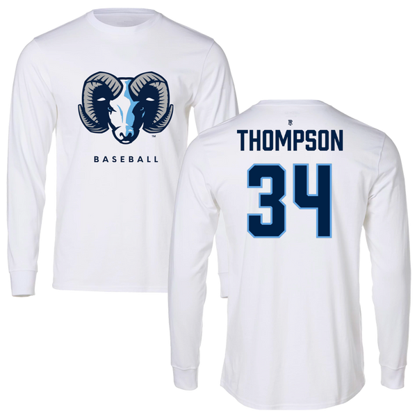 University of Rhode Island Baseball White Long Sleeve - #34 Ryan Thompson
