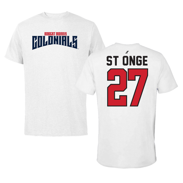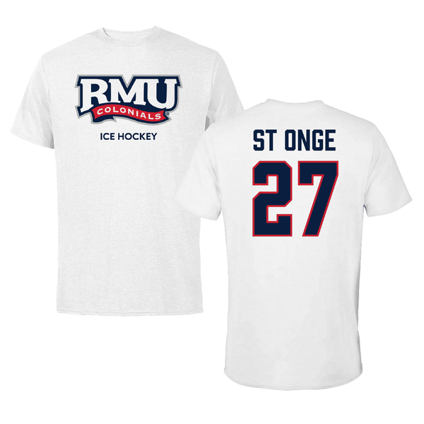 Robert Morris University Ice Hockey (M) White Tee - #27 Rylee St Onge