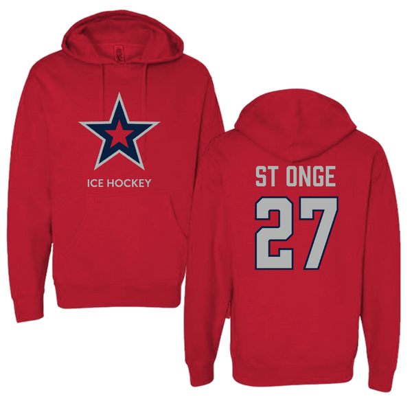 Robert Morris University Ice Hockey (M) Red Mascot Hoodie - #27 Rylee St Onge