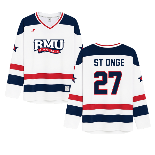 Robert Morris University White Hockey Jersey - #27 Rylee St Onge