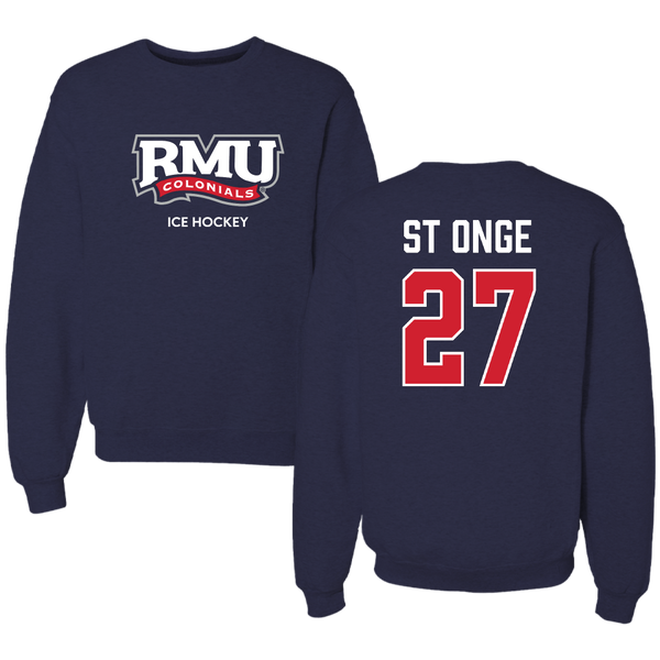Robert Morris University Ice Hockey (M) Navy RMU Crewneck - #27 Rylee St Onge
