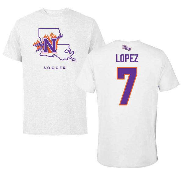 Northwestern State University Soccer White Tee - #7 Sabrina Lopez