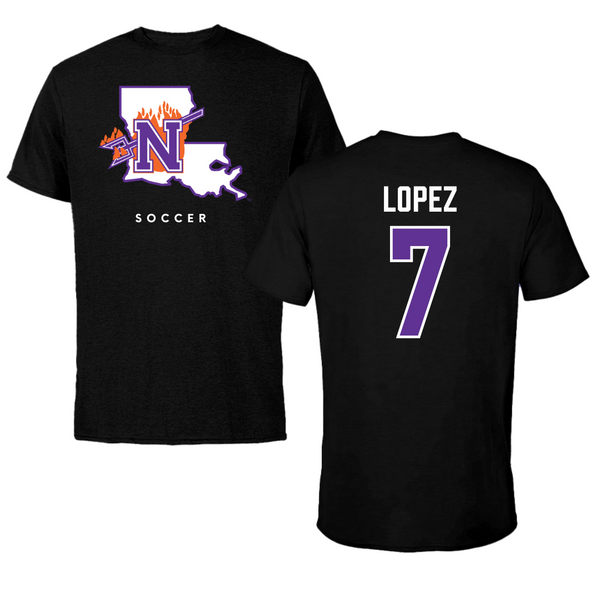 Northwestern State University Soccer Black Block Tee - #7 Sabrina Lopez