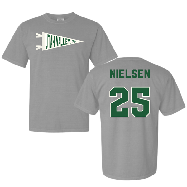 Utah Valley University Softball Light Gray Pennant Comfort Colors Tee - #25 Saige Nielsen