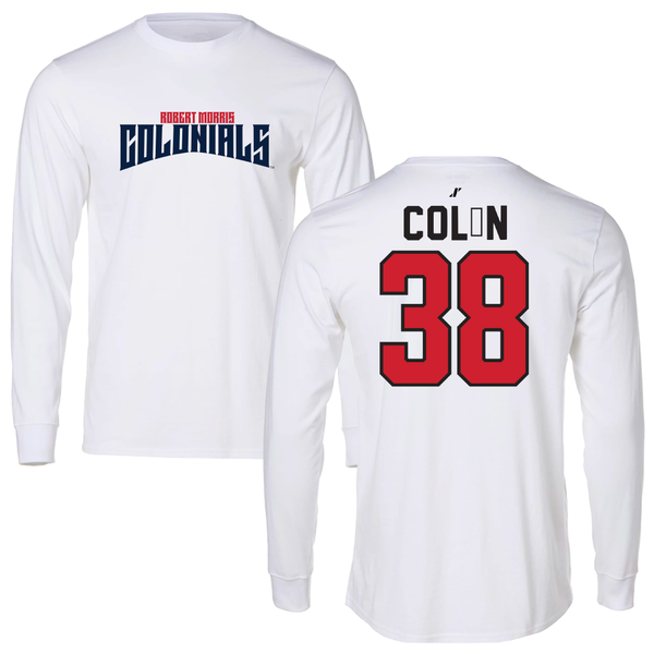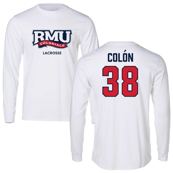 Robert Morris University Lacrosse (M) White Long Sleeve - #38 Sam Colón