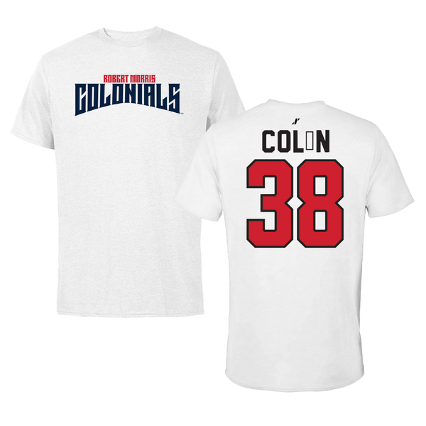 Robert Morris University Lacrosse (M) White Tee - #38 Sam Colón