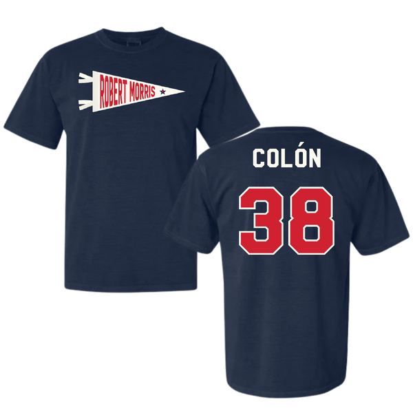 Robert Morris University Lacrosse Navy Pennant Comfort Colors Tee - #38 Sam Colón