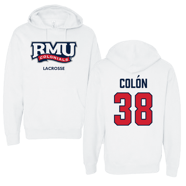 Robert Morris University Lacrosse (M) White Colonials Hoodie - #38 Sam Colón