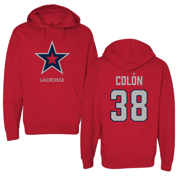 Robert Morris University Lacrosse (M) Red Mascot Hoodie - #38 Sam Colón