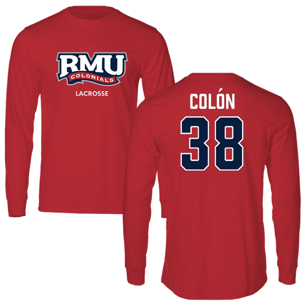 Robert Morris University Lacrosse (M) Red Long Sleeve - #38 Sam Colón