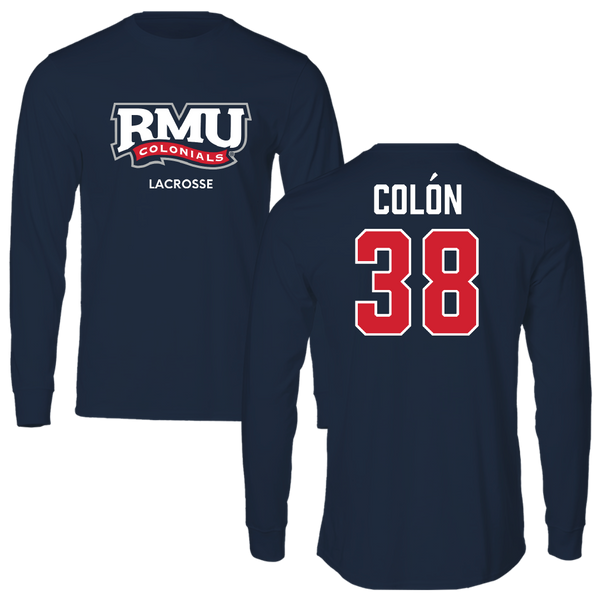 Robert Morris University Lacrosse (M) Navy RMU Long Sleeve - #38 Sam Colón