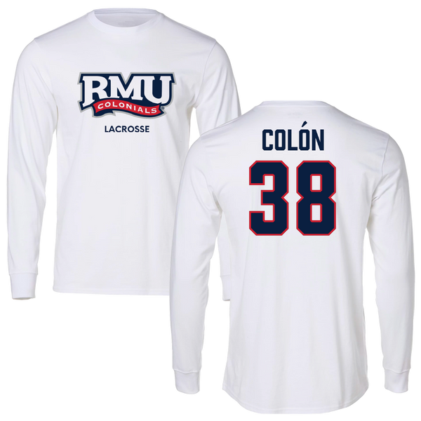 Robert Morris University Lacrosse White Classic Long Sleeve - #38 Sam Colón