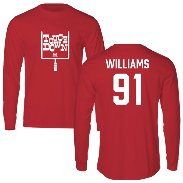 Miami University (Ohio) Football Red Touchdown Long Sleeve - #91 Sam Williams