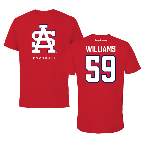 University of South Alabama Football Red Tee - #59 Sam Williams