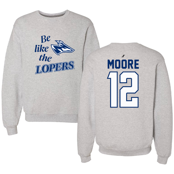 University of Nebraska at Kearney Basketball Light Gray Be Like Us Crewneck - #12 Samantha Moore
