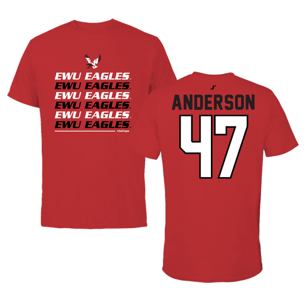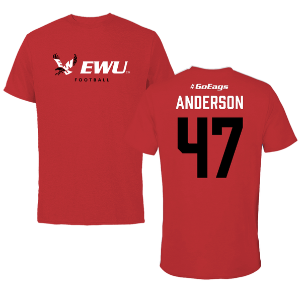 Eastern Washington University Football Red Tee - #47 Samarai Anderson