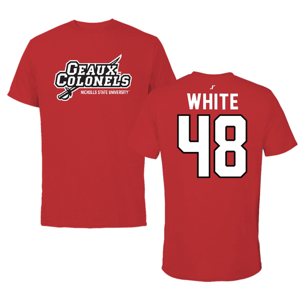 Nicholls State University Football Red Performance Tee - #48 Scott White