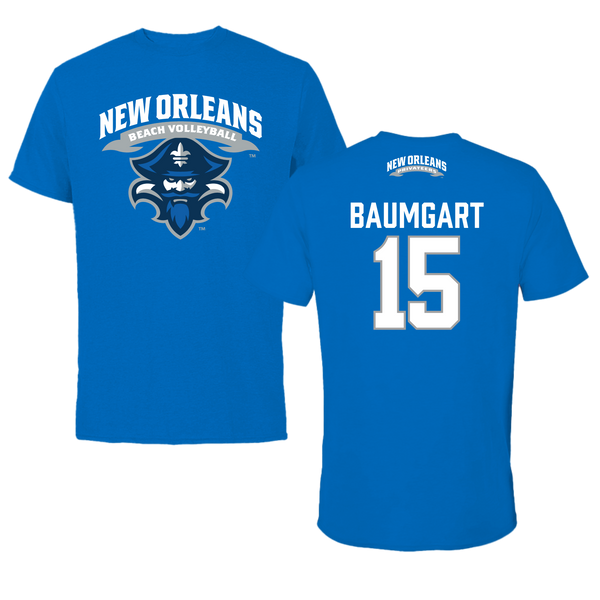 University of New Orleans Beach Volleyball Blue Mascot Tee - #15 Serena Baumgart