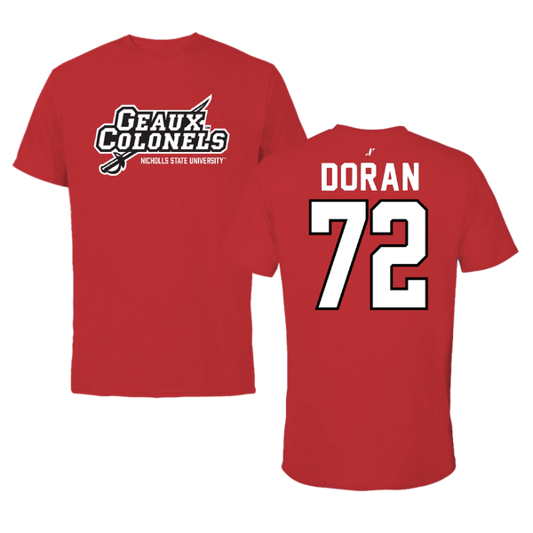 Nicholls State University Football Red Tee - #72 Seth Doran