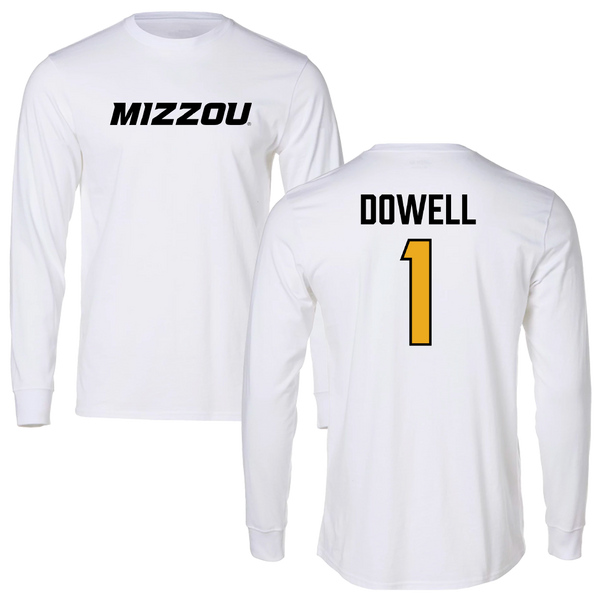 University of Missouri Basketball White Long Sleeve - #1 Shannon Dowell