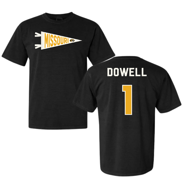University of Missouri Basketball Black Pennant Comfort Colors Tee - #1 Shannon Dowell
