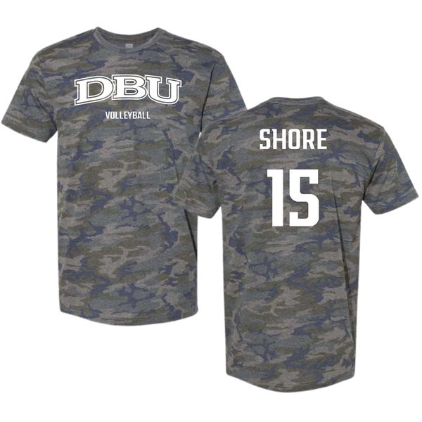 Dallas Baptist University Volleyball (W) Vintage Camo Tee - #15 Shaylee Shore