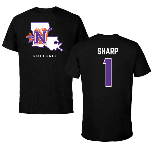 Northwestern State University Softball Black Block Tee - #1 Skye Sharp