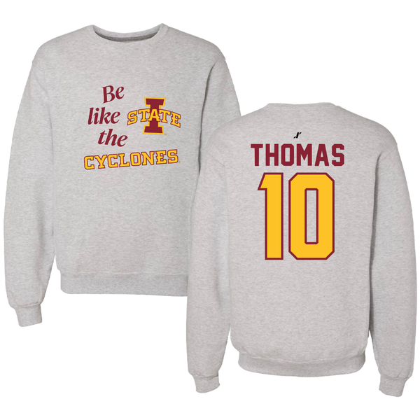 Iowa State University Soccer Light Gray Be Like Us Crewneck - #10 Sophia Thomas