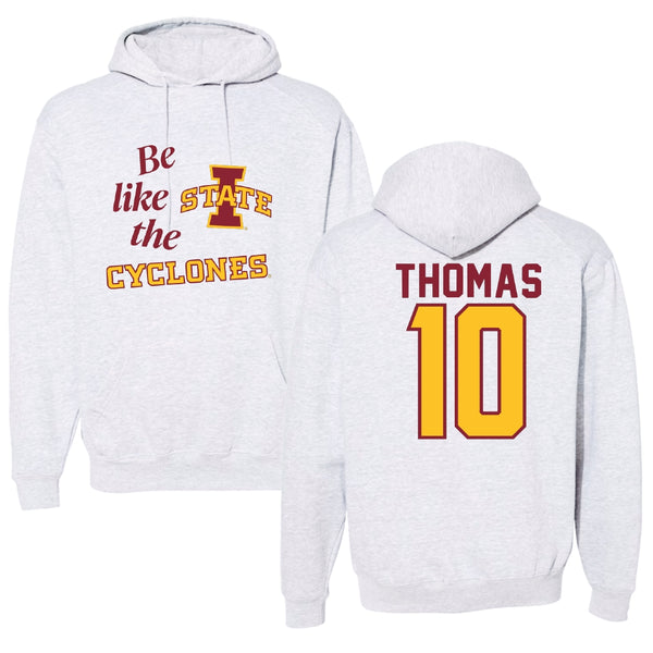 Iowa State University Soccer Light Gray Be Like Us Hoodie - #10 Sophia Thomas