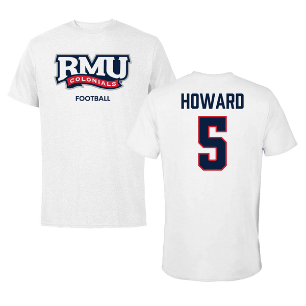 Robert Morris University Football White Classic Tee - #5 Tahseen Howard