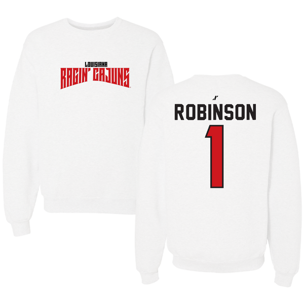University of Louisiana at Lafayette Basketball White Classic Crewneck - #1 Tamiah Robinson