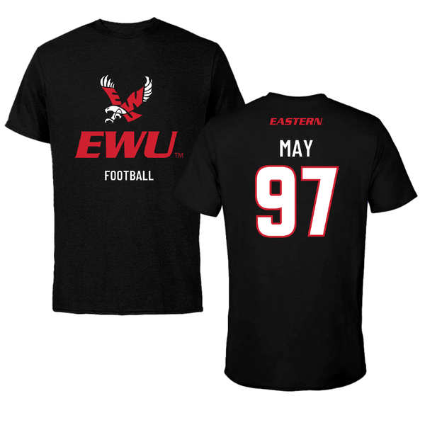 Eastern Washington University Football Black Eastern Tee - #97 Tariq May