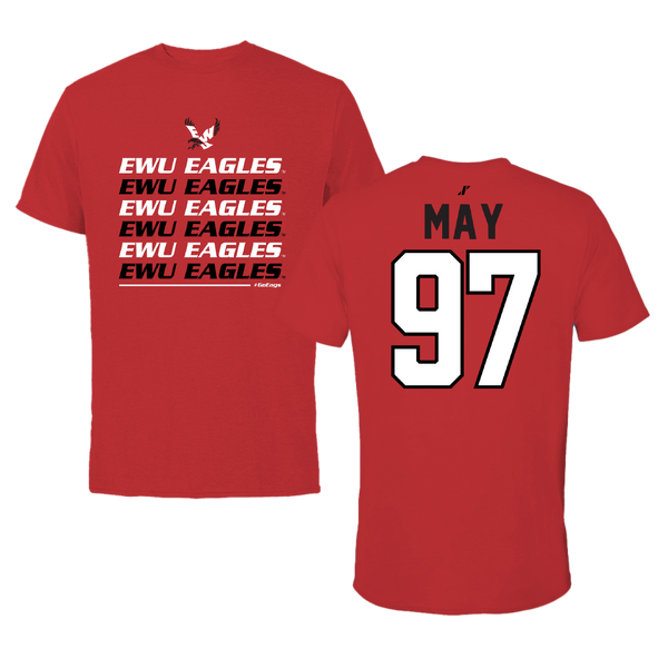 Eastern Washington University Football Red Tee - #97 Tariq May