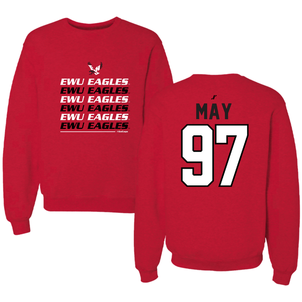 Eastern Washington University Football Red General Crewneck - #97 Tariq May