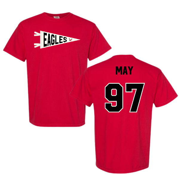 Eastern Washington University Football Red Pennant Comfort Colors Tee - #97 Tariq May